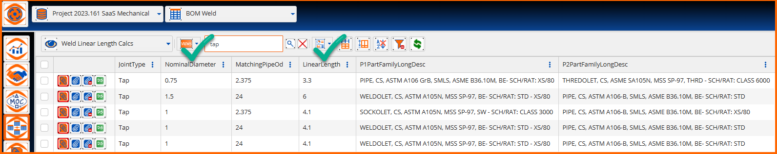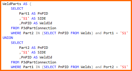 - Extracting All Welds: Extract all welds from the [P3dConnector] table where the [JointType] column contains 'weld' and 'tap'.