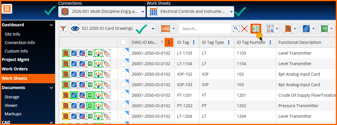 Once all the data has been saved in these Assignment worksheets, the IO drawings are ready to be created.